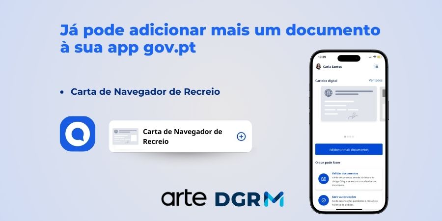 Os titulares da Carta de Navegador de Recreio, emitida pela Direção-Geral de Recursos Naturais, Segurança e Serviços Marítimos (DGRM), já podem aceder ao seu documento de forma digital através da aplicação gov.pt, a carteira digital que permite gerir, de forma simples e segura, documentos oficiais com validade legal.